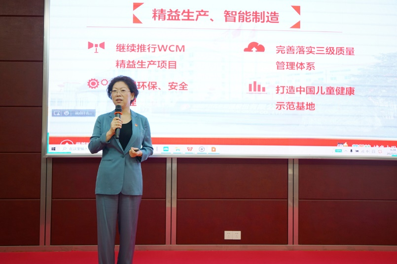 刘景萍董事长引用席大大总书记在2022年博鳌亚洲论坛上的重要讲话勉励全体与会人员,在海南自贸港建设的机遇期,认真学习贯彻落实省第八次党代会精神,坚持党建引领企业发展,将BG视讯药业集团打造成中国儿童健康领军企业。